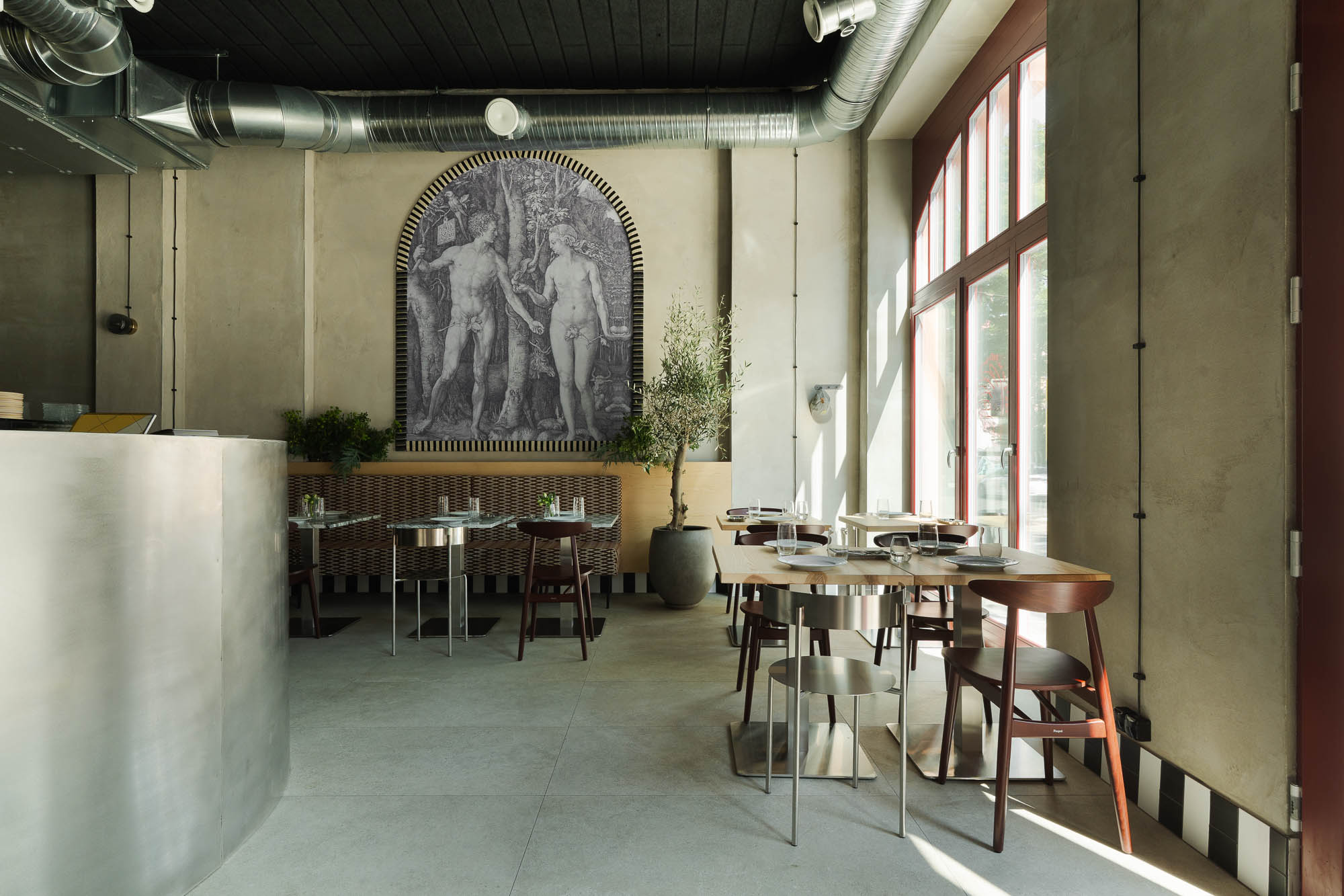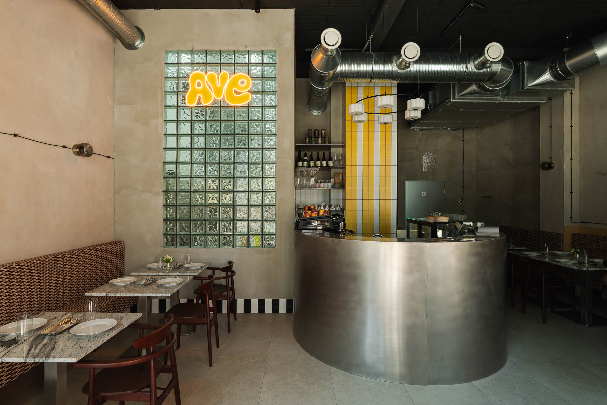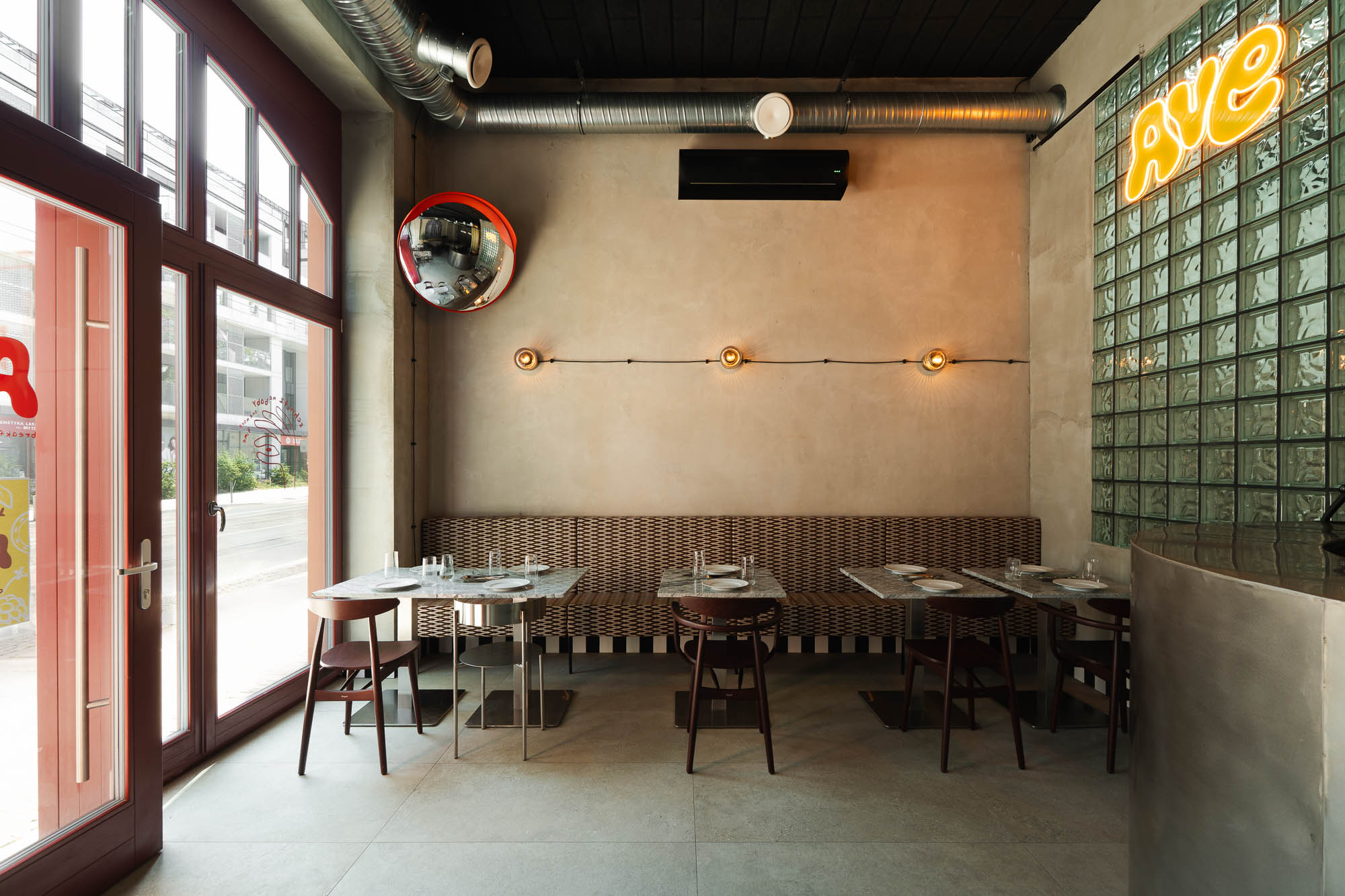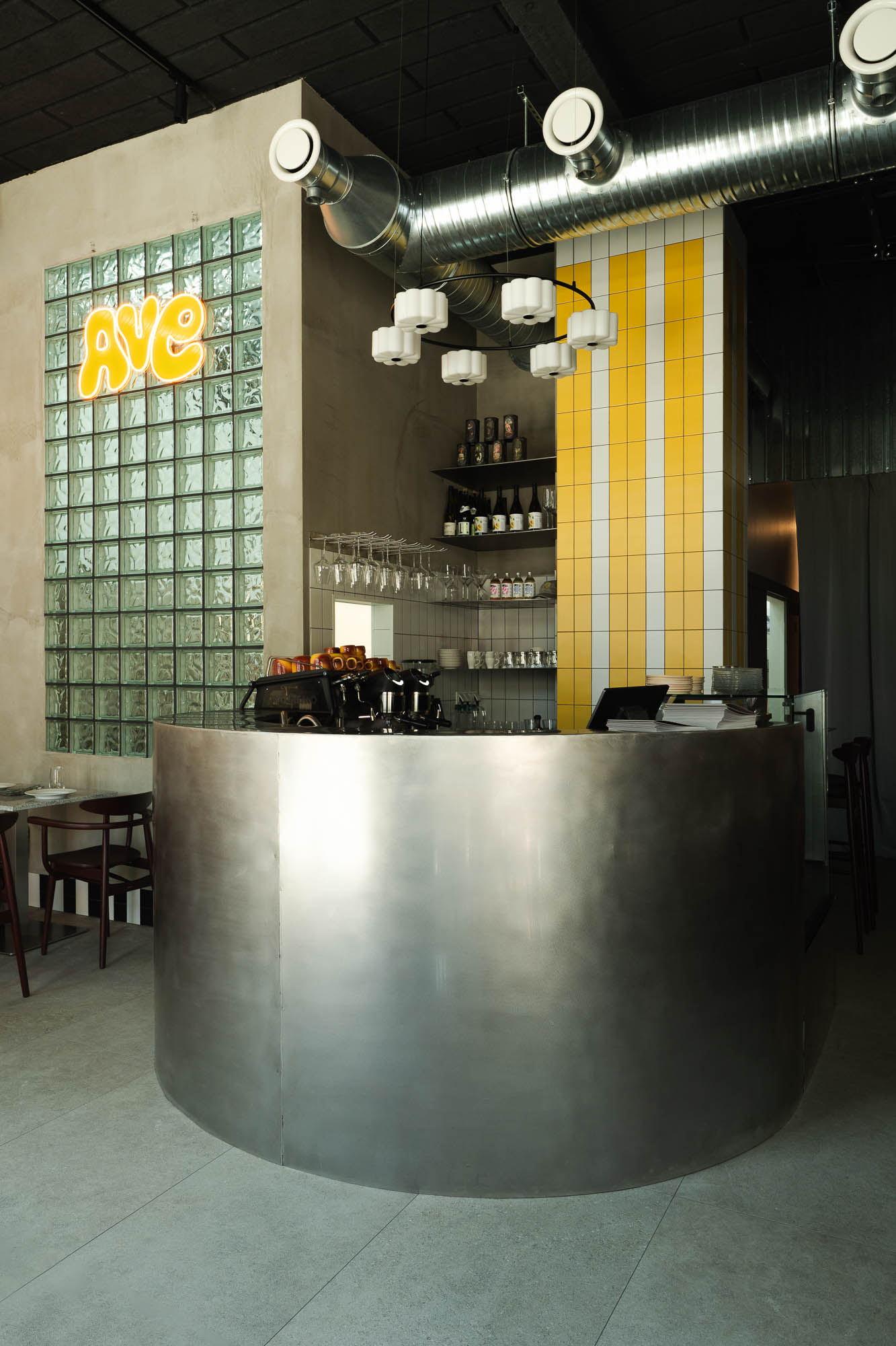 Nowoczesne wnętrze restauracji AVE na Jeżycach w Poznaniu, zlokalizowane w zabytkowej kamienicy, łączy surowy brutalizm z elegancją. Projekt autorstwa pracowni moosh wykorzystuje stal, szkło i drewno, a energetyczny akcent cytrynowej żółci dodaje przestrzeni charakteru.
